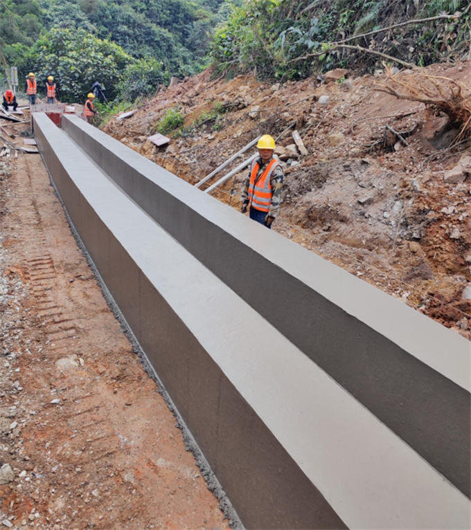 近期在广西防城港国道配套排水沟建设项目中,SP 15 成功摊铺成型大尺寸水沟整体结构物。成品的外观线性、结构稳定性、均质性、密实度都堪称精品,再一次得到了施工方及业主的高度认可。