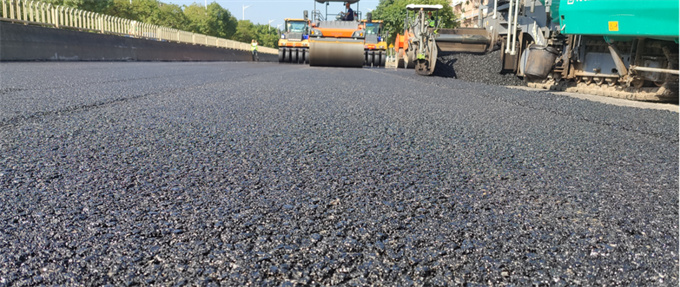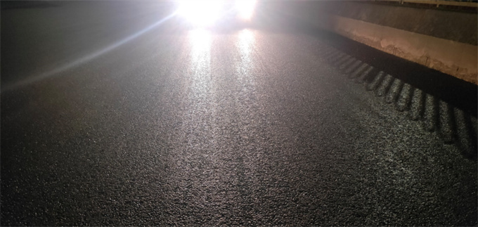 在这一项目中,悍马双钢轮新机型就实现了 5.5 km/h 的压实速度,高效作业。从以上现场白天和晚上的作业画面,都可以清晰地观察到路面平整度好,并没有出现小波浪的现象(以往普通压路机由于压实速度过快,冲击间隙过大而造成的压实不均的表现)。