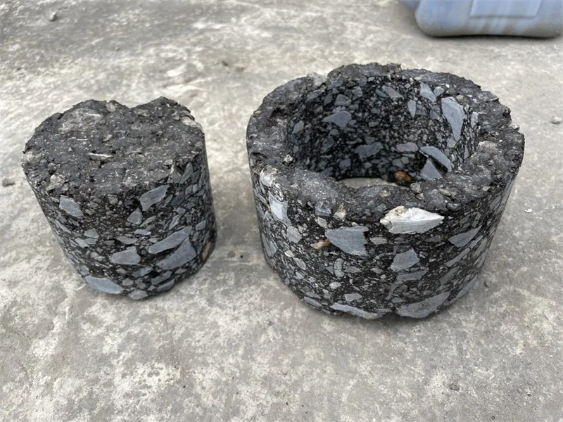 现场取芯的芯样骨料分布均匀,空隙率较小,非常致密