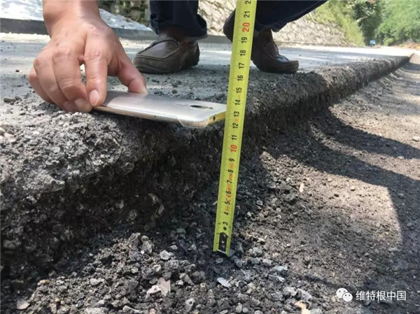 在施工过程中,为了调整标高,施工方先使用维特根 2 米档W 195铣刨机将原路面的沥青面层铣刨下来,铣刨深度为12-16 cm,铣刨下来的旧料准备循环利用。